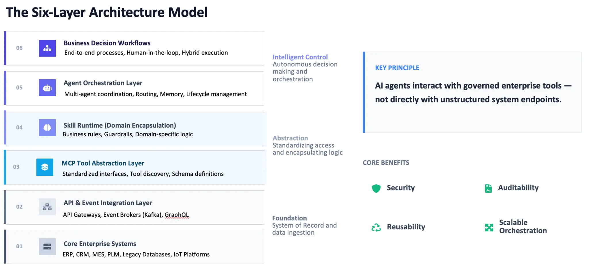 Every Process Intelligence Engine is built on Nu10’s six-layer architecture model. This structured approach ensures enterprise-grade reliability, security, and scalability. Each layer serves a specific purpose, from core enterprise systems to autonomous business decision workflows with human oversight.